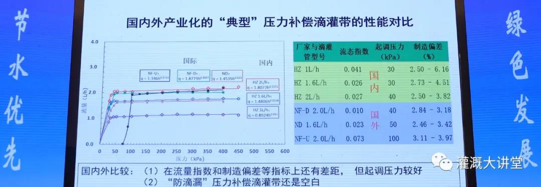 ? ? ? ??李教授從微灌常用產(chǎn)品(滴灌帶、滴頭、壓力補(bǔ)償?shù)喂喙艿裙嗨鳎?,同國外同行的比較中,說明區(qū)別和建議。對國內(nèi)產(chǎn)品研發(fā)上給與肯定,同時也對市場中產(chǎn)品質(zhì)量的參差不齊擔(dān)憂。