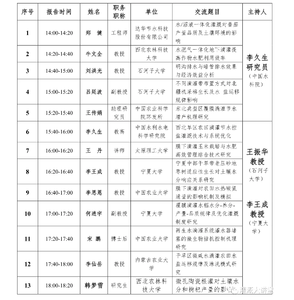 三、7月26下午分為四個分會場:節(jié)水灌溉理論、節(jié)水灌溉技術(shù)、節(jié)水灌溉裝備研發(fā)、節(jié)水灌溉模式集成與應(yīng)用。